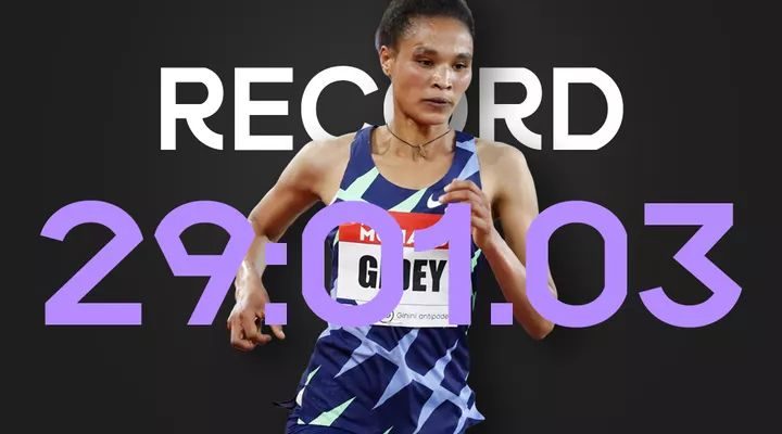 Letesenbet Gidey breaks Sifan Hassan’s two-day-old 10,000m world record with 29:01.03.